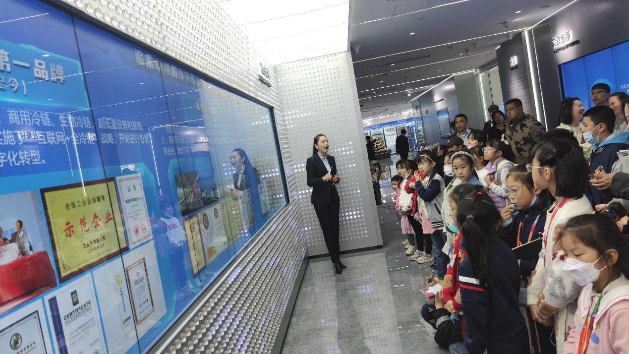 在上午青版財經小記者團的活動中,講解員向小記者們介紹了澳柯瑪的企業發展歷史、文化理念、科技創新實力。小記者們認真聽講解、記筆記,興致盎然配合工作人員演示產品功能,全方位、多角度了解澳柯瑪科技創新背后的故事。